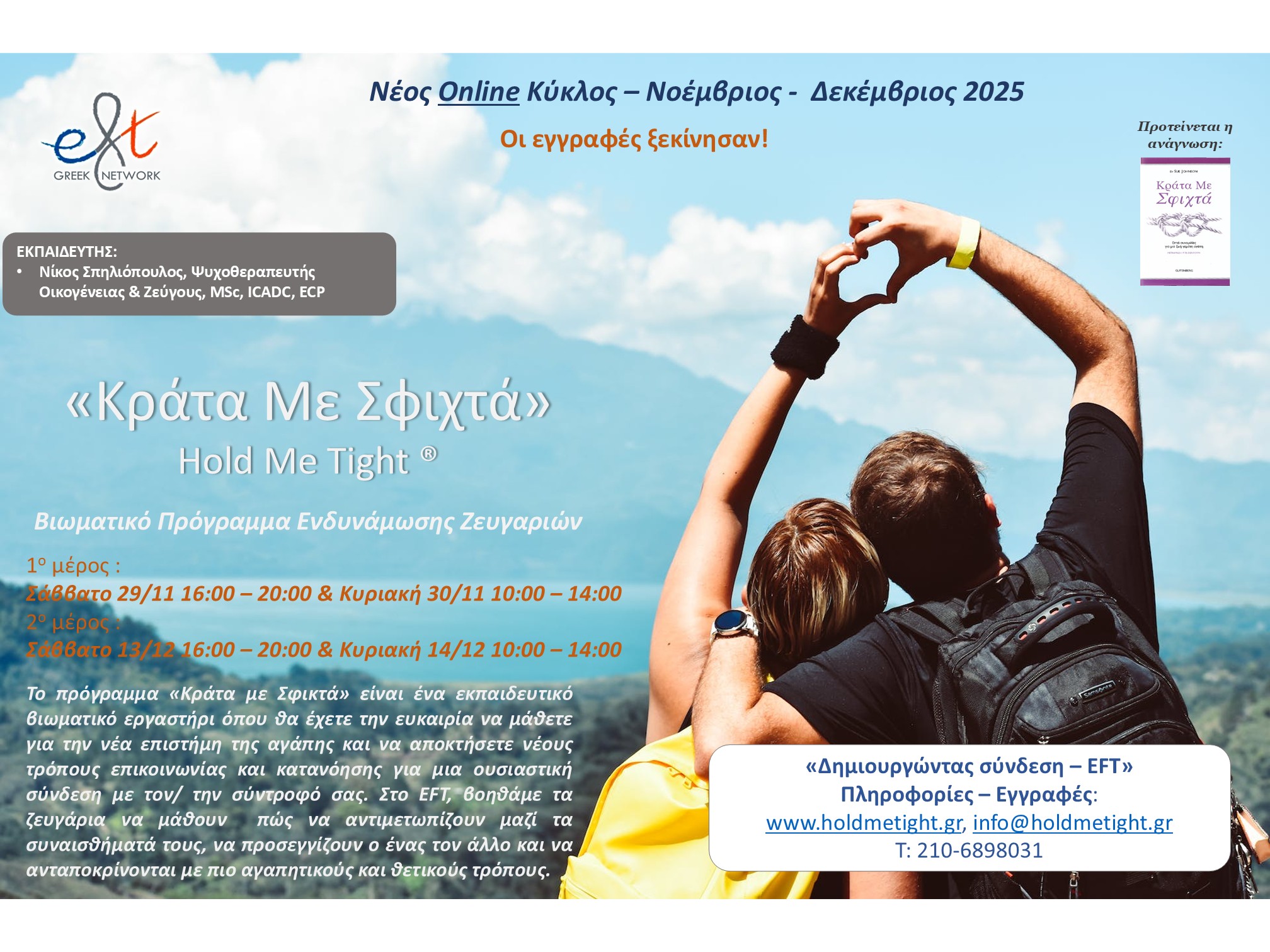 Νέος διαδικτυακός κύκλος του σεμιναρίου ενδυνάμωσης ζευγαριών “Κράτα Με Σφιχτά (Hold Me Tight ® Workshop)”