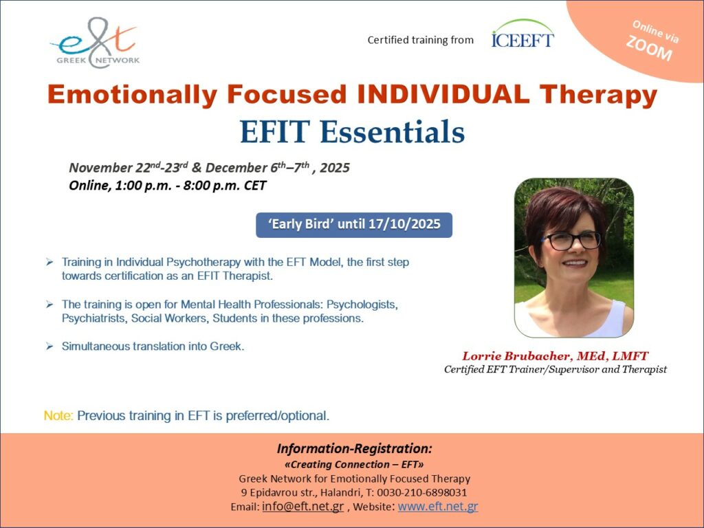 This 4-day (24-hour) training event is a didactic and experiential program where participants will be invited to apply the EFIT principles and interventions. The training will delve into the heart of the empirically validated EFIT model, presenting a coherent framework for understanding individual emotional processing and change.
