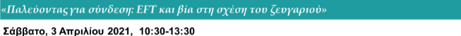 Ένας νέος κύκλος Core Skills Advanced EFT Training ξεκινά τον Απρίλιο στο Χαλάνδρι. Το πρόγραμμα Core Skills στοχεύει στη διεύρυνση των κλινικών δεξιοτήτων που σχετίζονται με τη θεραπευτική διεργασία του EFT. Διευκολύνει τη βαθύτερη κατανόηση και εξοικείωση με το μοντέλο, μέσω της ενεργής συμμετοχής και της εξατομικευμένης καθοδήγησης. Διεξάγεται σε μικρή ομάδα (περίπου 12 ατόμων) και αξιοποιεί ένα συνδυασμό μεθόδων (παρουσίαση πληροφοριών, βιωματικές ασκήσεις, ζωντανές συνεδρίες θεραπείας ζεύγους και συμβουλευτική/εποπτεία πάνω σε συγκεκριμένα Διαβάστε περισσότερα...